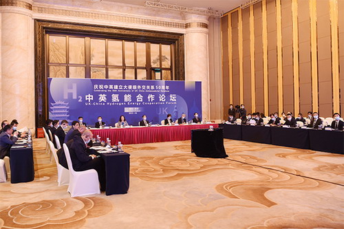 2022年4月28日,为纪念中英建立大使级外交关系50周年,首届“中英氢能合作论坛”在曼彻斯特举行。此次论坛由驻曼彻斯特总领馆、英国对华事务委员会、大曼彻斯特英中协会主办,武汉理工大学、曼彻斯特城市大学承办,湖北省外办、武汉市外办、清华大学战略与安全研究中心中国论坛及英国驻武汉总领馆参与了筹办工作。论坛开幕式由英国对华事务委员会主席范浩宏与湖北省外办主任章笑梅通过视频连线联合主持,驻英国大使郑泽光、驻曼彻斯特总领事郑曦原和湖北省副省长赵海山、武汉市副市长党蓁、武汉理工大学校长杨宗凯、中国银行伦敦分行行长方文建、英国驻华贸易代表吴桥文、英国驻武汉总领事霍加凯、大曼彻斯特副郡尉杨钜文、曼彻斯特市议长克瑞格、曼彻斯特英中协会主席庞大维等出席。