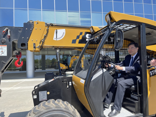 访问行程即将结束时,一辆亮黄色的叉车停在了厂房外。“这是三一为美国当地市场量身制造的叉车,秦大使您要试驾一下吗?”“可以!”秦大使仔细了解驾驶要领,发动机器,驾驶车辆稳稳向前驶去,“动力很充足,平稳、舒适!”