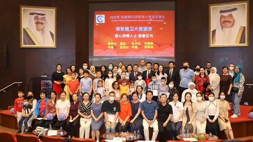 2022年6月10日,驻科威特大使张建卫出席第五届全球华语朗诵大赛科威特赛区颁奖仪式,旅科侨团代表、科华侨华人联合会华文学校师生、当地友人等100余人参加。