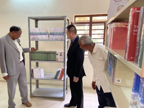 2022年6月14日,驻苏丹大使马新民考察苏丹科技大学,会见学校副校长阿卜杜勒·阿兹姆,举行我馆援建的“中国大使书屋”启用仪式,并向书屋捐赠首批500册各类图书。这是我馆在苏高校援建启用的第三个大使书屋。