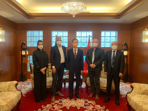 2022年8月25日,驻瑞典大使崔爱民会见瑞典孵化器科技园协会(SISP)总裁厄德马克和瑞典创新署国际创新和研究合作政策专家一行,双方就推进中瑞科技园区合作交换意见和看法。