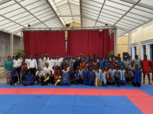 2022年9月4日,驻赤道几内亚大使亓玫应邀出席赤几功夫联合会举办的首届赤几全国武术比赛决赛。