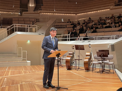 晚间,吴大使出席中德建交50周年工商界音乐会并致辞。吴大使指出,回顾建交50年来中德经贸关系的发展史,正是不同乐器之间也能合力奏响华美乐章的最好体现。建交之初,中德经贸合作是一部舒缓优美的奏鸣曲,双边经贸合作新图景渐次铺开。中国改革开放以来,中德经贸合作是一部波澜壮阔的协奏曲,双边经贸关系发展迅速、成果丰硕,成为中欧经贸关系中的第一小提琴手。今天,中德经贸关系是一部慷慨激昂的交响曲。只要双方从战略高度牢牢把握两国关系的大方向,中德经贸合作在未来定将谱写出更加辉煌的新篇章!