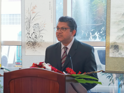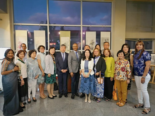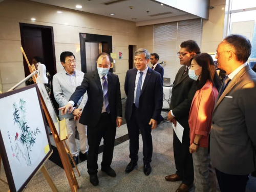 2022年9月29日,为庆祝中毛建交50周年,欢度国庆节,喜迎二十大,由毛里求斯大学孔子学院和毛国家电视台共同举办的“中国·毛里求斯-友谊·和谐”中国书画展开幕式在毛国家电视台举行。驻毛里求斯大使朱立英、毛大校长桑吉夫·索比教授、毛国家电视台人力资源经理拉姆索瓦·拉姆苏鲁普出席活动并致辞,毛国际水彩协会会长里亚兹·奥拉丁、毛中国美术协会会长廖运运、孔院毛方院长塔姆、孔院中方院长付明端以及毛绘画艺术爱好者出席了活动。
