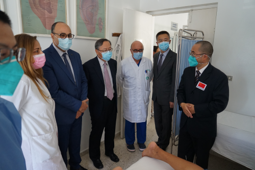 2022年10月20日,驻突尼斯大使张建国参访突尼斯马尔萨医院,考察针灸中心并出席捐赠仪式。突尼斯市卫生局长本·纳赛尔、马尔萨医院院长阿亚里等卫生官员和院方代表参加。