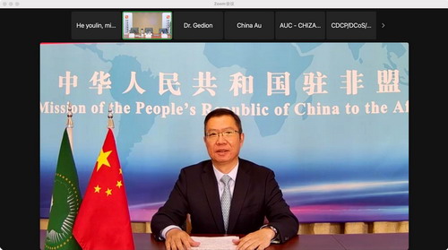胡大使在主旨讲话中表示,中国共产党第二十次全国代表大会刚刚胜利闭幕,这是中国迈上全面建设社会主义现代化国家新征程、向第二个百年奋斗目标进军的关键时刻召开的一次十分重要的大会,为新时代新征程党和国家事业发展指明了前进方向,确立了行动指南。党将团结带领全国各族人民以中国式现代化全面推进中华民族伟大复兴,并推动构建人类命运共同体。胡大使表示,中非盟关系为传承中非传统友好和加强新时代团结合作发挥了重要引领作用。今年以来,习近平主席致电祝贺非盟峰会召开,并在中非盟建交20周年之际同非盟轮值主席互致贺电,体现了双方高度政治互信。长期以来,中方秉持真实亲诚理念和正确义利观,毫无保留同非方分享发展经验与机遇,连续13年成为非洲最大贸易伙伴,在非洲抗击埃博拉、新冠肺炎疫情,应对粮食危机和气候变化,推动经济复苏和工业化进程等重要紧迫任务之际始终与非洲共克时艰、团结互助。在双方的辛勤耕耘和不懈努力下,中非命运共同体已成为构建人类命运共同体的典范。中方愿同非方紧密携手,加强中国发展战略同非盟《2063年议程》及非洲各国发展战略的对接,共同实现更大范围、更高层次的高质量合作与发展,让中非合作的红利与累累硕果更好造福双方人民。