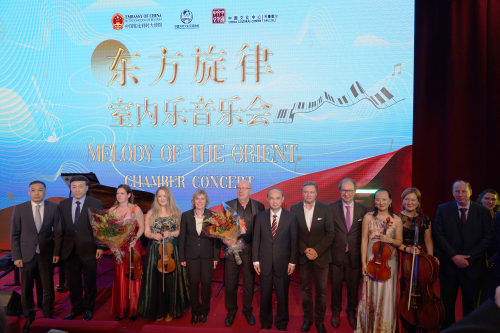 2022年10月29日,由驻比利时使馆、中国对外文化交流协会主办,布鲁塞尔中国文化中心承办的“东方旋律”室内乐音乐会在布鲁塞尔中国文化中心举行。驻比利时大使曹忠明、埃诺省省长勒克莱、比中经贸委员会主席德威特、弗中商会行政总裁宋慧安、欧洲与世界博爱协会主席德尔文、布鲁塞尔中国文化中心主任葛译友、香港驻布鲁塞尔经贸办事处副代表蔡禧扬等100余名中比嘉宾出席音乐会。