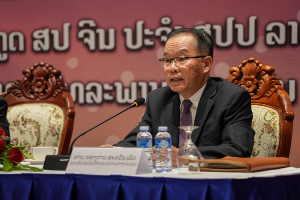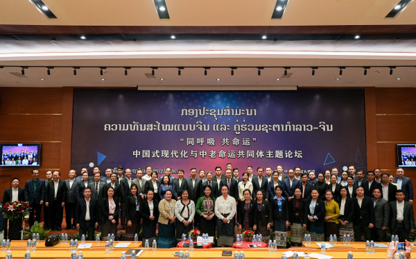 2023年4月6日,“同呼吸 共命运”中国式现代化与中老命运共同体主题论坛在万象举行,驻老挝大使姜再冬与老挝副外长通潘出席并做主旨演讲,双方并就落实全球文明倡议交换意见。