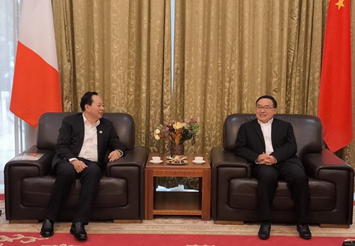 2023年11月21日,驻意大利大使贾桂德会见来意访问的华南理工大学党委书记章熙春一行。