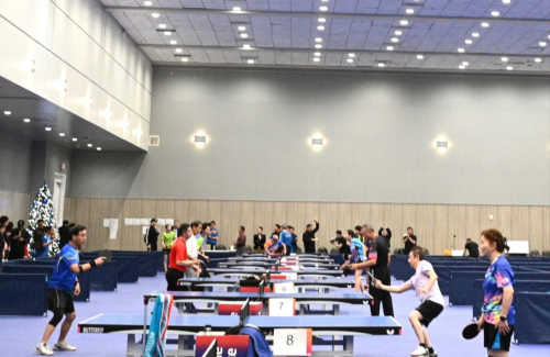 2023年12月14日,驻洛杉矶总领事郭少春出席由美国南加州华侨华人联合总会主办的2023中美乒乓外交杯友谊赛,同美国乒协首席执行官沈伟妮为比赛开球。