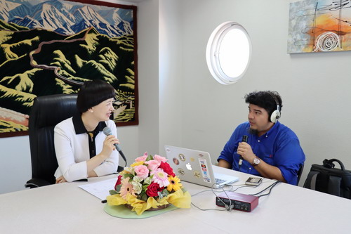 2024年3月21日,驻伊基克总领事傅新蓉通过宝丽娜电台向领区各界宣介两会精神和中国政府工作报告主要内容。