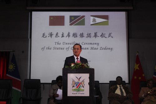 2024年7月3日,驻纳米比亚使馆与纳米比亚教育、艺术与文化部在纳首都毛泽东主席中学隆重举行毛泽东主席雕像揭幕仪式。纳教育部长恩吉蓬多卡为雕像揭幕,驻纳米比亚大使赵卫平和纳劳工部长、纳驻华大使、霍马斯省长等100多人出席。雕像由中国著名雕塑家袁熙坤创作并捐赠。