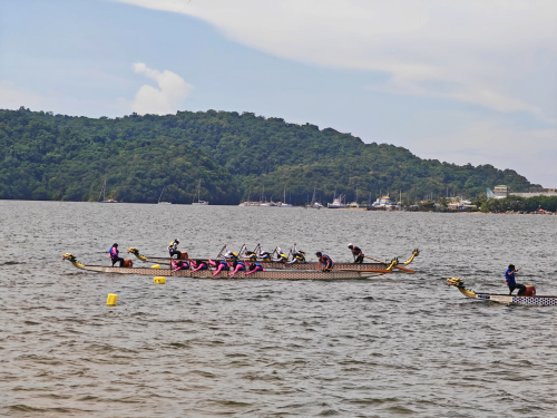 来自特多全国20余支龙舟队在海上劈波斩浪、奋楫角逐。赛事现场还表演了精彩的文艺节目,当地民众近千人参与活动。