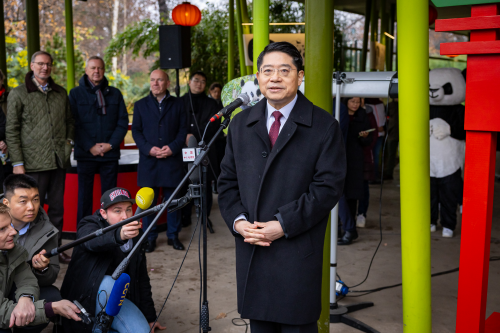 2024年12月6日,驻德国大使邓洪波出席柏林动物园大熊猫双胞胎“梦好”“梦甜”命名仪式。柏林市市长韦格纳、柏林动物园园长克尼里姆、媒体记者等50余人出席。