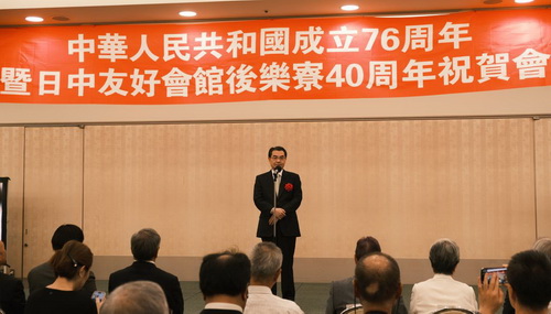 野田毅、海江田万里、近藤昭一等祝贺中华人民共和国成立76周年及后乐寮成立40周年,期待后乐寮为促进日中关系发展做出更大贡献。