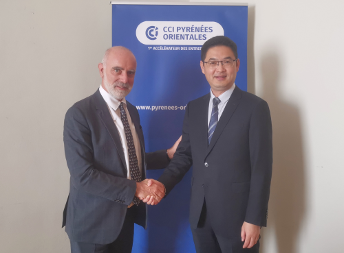 2025年9月29日,驻马赛总领事何有麟在佩皮尼昂市会见东比利牛斯省工商会主席格兹,双方就进一步深化经贸、文旅等领域合作进行了交流。