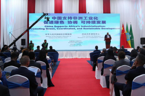 2025年11月6日,驻非盟使团在埃塞通讯社举办“中国支持非洲工业化:促进绿色、协调、可持续发展”研讨会。驻非盟使团团长蒋烽大使、非盟委员会基础设施与能源委员马塔博赫、埃塞创新技术部部长助理克斯克斯、中国工信部产业政策与法规司司长黎烈军,非洲进出口银行、联合国工发组织、开发计划署、教科文组织等机构高级别代表,中非学者、多国使节、企业代表等约150人参会。