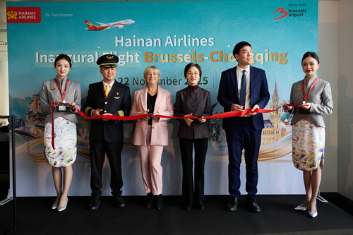 2025年11月22日,中国海南航空公司正式开通布鲁塞尔至重庆直飞航线,驻比利时使馆临时代办李艳、布鲁塞尔机场首席商务官范登艾德、海南航空布鲁塞尔办事处总经理李蒙等出席首航仪式,共同见证布鲁塞尔—重庆国际航线全新启程。