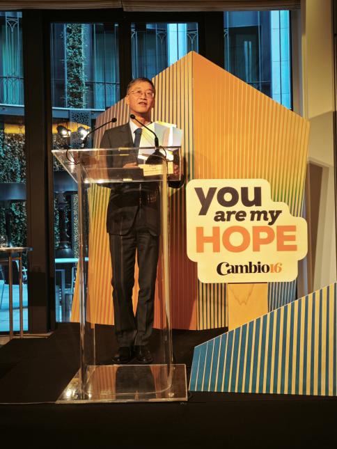 《变革16》系西重要新闻杂志,以政治、经贸、文化等各领域深度报道闻名,每年举行盛大年度颁奖典礼。此次评奖旨在表彰中国投资为西班牙生态转型及再工业化所作贡献。