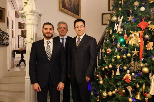2026年1月7日,驻马耳他大使张佐应阿塔德集团艾瑞格董事长邀请,出席马工商界新年招待会并主旨演讲,马反对党领袖博奇出席致辞,影阁贸促部长卡勒斯、经济部长赛利亚、气候部长议会最年轻女议员博内洛等参加。