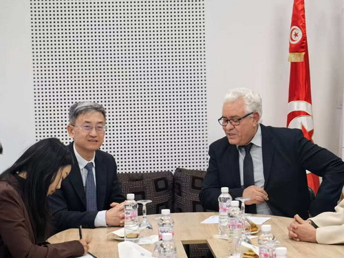 2026年1月8日,驻突尼斯大使万黎到访苏斯大学,会见校长贝尔卡塞姆及相关院系负责人,就中突在高等教育等领域合作深入交换意见。