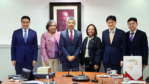 2026年1月12日,驻洪都拉斯大使于波会见洪私营企业家协会(COHEP)主席加利亚多。外交部拉美司孙怡副司长参加会见。