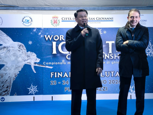 2026年1月23日,驻米兰总领事刘侃出席在塞斯托圣乔瓦尼市举办的国际冰雕锦标赛开幕式并致辞。塞斯托市长迪斯特凡诺、意大利冰雕艺术家协会主席任聂拉、塞斯托市旅游促进协会主席博法蒂等出席并致辞。