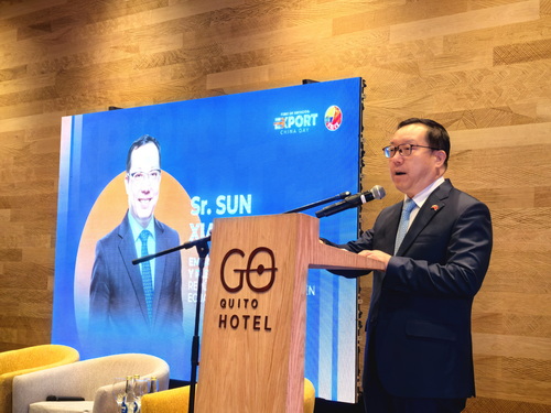 2026年1月21日,驻厄瓜多尔大使孙向阳应邀出席厄瓜多尔—中国商会举办的“出口中国”商务论坛。厄中商会主席凯塞多、厄外贸副部长阿尔西瓦等出席活动。