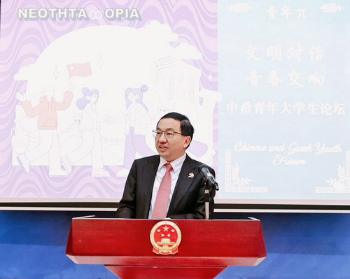 方大使结合当前国际形势,深入阐述中国坚定践行四大全球倡议、维护多边主义的立场,介绍中国“十五五”规划和高质量发展前景。表示中希两国传统友好,两国青年是两大文明古国的未来,希望大家加强交流互鉴,加深彼此了解,促进相知相亲,不断赓续中希友好传统,为两国关系发展注入源源不断的新活力。