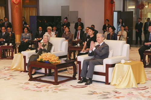 莫尼列太后欣赏了使馆外交官和端华学校师生表演的节目,现场洋溢着节日的喜庆氛围。