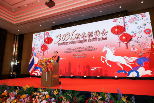 陈总领事向大家问候新春,表示2025年,以习近平同志为核心的党中央团结带领全党全国各族人民迎难而上、砥砺前行,在中国式现代化征程中写下很不平凡的一笔。2026年中国开启“十五五”,中泰关系迎来新的“金色50年”,让我们携手并肩,为强国建设、民族复兴伟业、为中泰友好做出新的贡献。