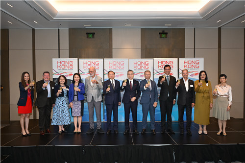 与会嘉宾举杯共祝香港明天更加美好,中新关系再结硕果。