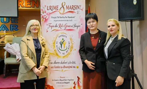 2026年3月8日,驻阿尔巴尼亚使馆妇女小组赴都拉斯市向当地能力受限妇女捐赠生活物资,共同庆祝“三·八”国际劳动妇女节。驻阿尔巴尼亚大使庞春雪、阿议员布迪尼、“在一起我们可以”协会会长塔莎等百余名妇女代表出席活动。