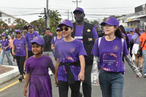 2026年3月8日,驻圭亚那大使杨扬和圭亚那第一夫人阿里共同出席圭政府组织的庆祝第116届国际劳动妇女节健步走活动并讲话,圭各界妇女代表2000余人参加。