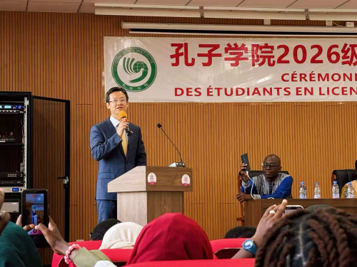 2026年3月31日,驻马里大使李响出席孔子学院2026级汉语专业开学典礼。扬博·沃洛根大学校长兼孔子学院马方院长贝尔酷、中方院长刘祖勤、孔子学院师生等100余人出席。
