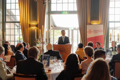 2026年4月14日,驻荷兰大使申博出席荷兰中国商务理事会交流会并发表主旨演讲,宣介中国“两会”精神和“十五五”规划,荷政府部门、工商界代表、高校及友好人士等80余人出席。