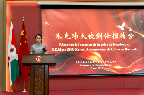 2026年4月15日,驻布隆迪大使朱克玮出席使馆举办的到任招待会。布国家领导人共和国申诉专员卡尼亚纳、外交部常秘姆巴鲁布凯耶、部长助理布库鲁等政要及布议会参众两院、执政党、外交部等机构和部门负责人、各国驻布使节、国际组织驻布代表、中资机构企业、华侨华人等近300人出席。