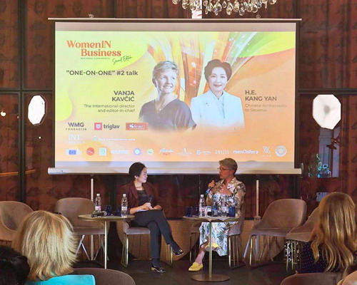 2026年4月17日,驻斯洛文尼亚大使康艳应邀出席在科佩尔市举办的2026地区商业女性论坛,并接受“一对一”访谈。康大使介绍了中国在女性教育、职业发展、创业赋能等方面取得的显著成就,以及“十五五”期间助力女性实现更高质量发展的规划和愿景,分享了中国杰出女教师张桂梅的感人事迹,呼吁女性朋友积极行动起来,共创美好未来。