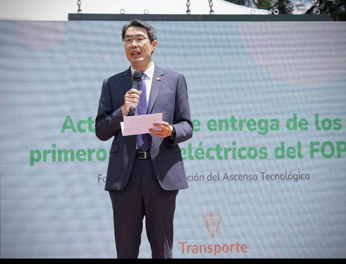 朱大使在致辞中表示,作为新能源汽车生产和出口大国,中国为哥推进交通电气化作出重要贡献,愿做哥可信赖的合作伙伴,通过持续深化双边互利合作,助力哥能源转型和绿色发展。