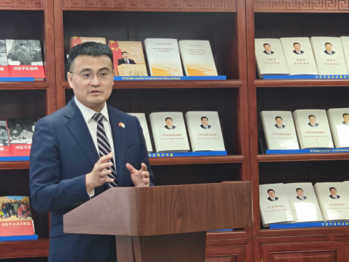 驻乌兹别克斯坦大使于骏在“习近平总书记著作书屋”同乌青年学生交流