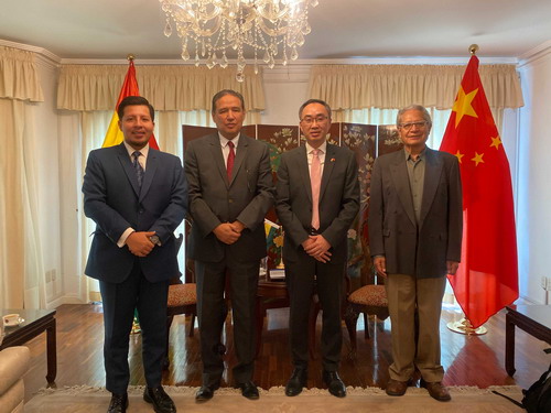 2026年4月24日,驻玻利维亚大使王亮会见玻智库千禧基金会执行主任奥波尔多一行。