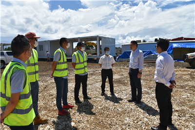 2020年9月17日,驻巴布亚新几内亚大使薛冰前往巴新新爱尔兰省中铁建设、中铁建工、中国十九冶项目工地和驻地,看望慰问疫情期间坚守岗位的一线员工。