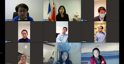 2021年12月5日,驻里昂总领馆举办领区侨学界线上交流活动,驻里昂总领事陆青江、总领馆主要领事官员与领区华侨华人、留学生代表50多人进行视频座谈。