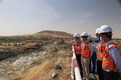 蒋大使先后参观了大坝施工现场和设备安置区,实地了解工程形象进度,随后在营地召开座谈会,听取项目部总经理周辉敏就项目总体情况、存在困难、下阶段安排和主要诉求所做工作汇报。