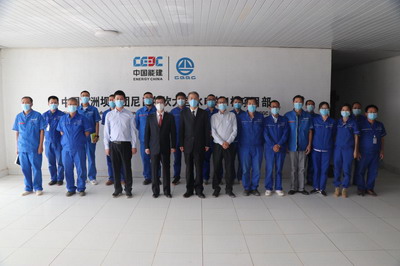 2021年12月7日,驻尼日尔大使蒋烽驱车赴坎大基水电站项目工地参观考察,并看望慰问在现场工作的中国葛洲坝集团工程技术人员。