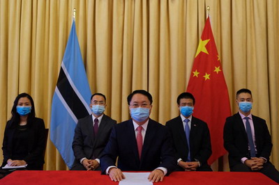 2022年1月6日,驻博茨瓦纳使馆举办领事协助志愿者座谈会。驻博茨瓦纳大使王雪峰出席并讲话。