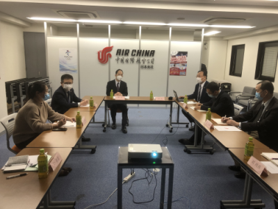 国航日本地区总部总经理冯力感谢使馆的慰问,表示去年国航日本地区总部内外工作取得积极成果,全年保持人员“零感染”目标,企业效益实现正增长。新的一年里,国航日本地区总部将继续做好企业经营和防疫工作,全力服务好北京冬奥会,以更加优异成绩迎接党的二十大召开。