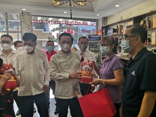 随后,张大使向有关侨胞代表亲手发放“春节包”,祝愿他们平安健康、日子越过越好;向侨界防疫联络员和志愿者代表发放奖品,对他们的付出和爱心予以表彰;走访中国城餐馆、店铺,了解华商经营状况和主要诉求,赠送使馆准备的春节纪念品,祝愿他们虎年行运、生意兴隆、福虎生威!