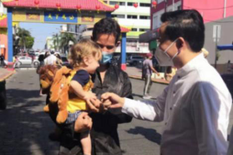2022年1月30日,驻多米尼加大使张润来到多首都圣多明各著名华商聚集区—中国城,开展新春慰侨活动并向有关侨胞发放“春节包”。