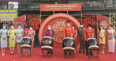 吴志武总领事与清迈市市长阿萨尼等共同为第19届唐人街新春盛会击鼓揭幕。阿萨尼市长表示,清迈市在防疫新常态下举办春节盛会,旨在弘扬唐人街独特的商业和社区文化,也是为了促进清迈旅游发展,为未来完全开放摸索经验。吴总领事表示,春节盛会将使更多朋友领略清迈“中国风” 的独特韵味,提升“魅力清迈” 的影响力,希望盛会能更多吸引华侨华人社团参与,越办越好。